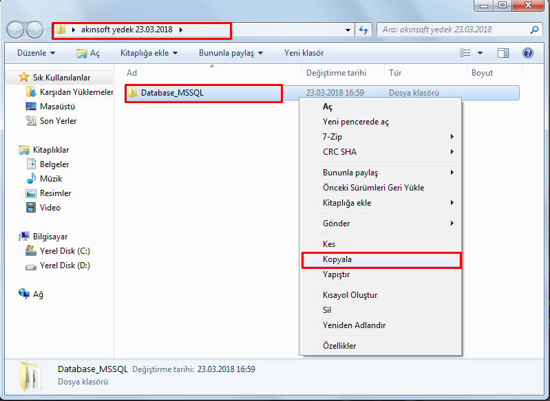 AKINSOFT muhasebe yazılımı (Wolvox, OctoPlus vb.) MSSQL veritabanı kullanıyorsa, yedekleme işlemi direkt olarak database klasörü üzerinden yapılır.