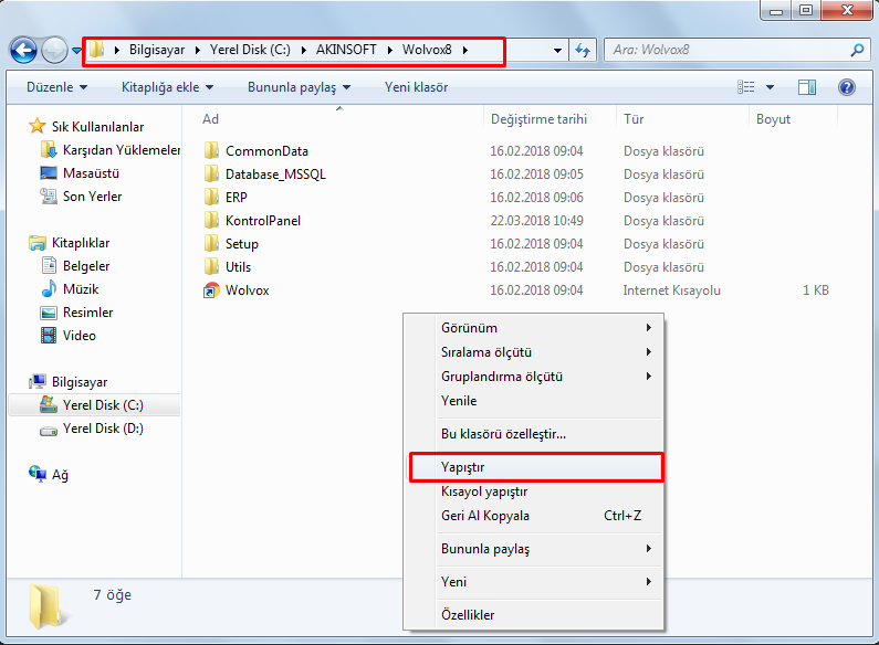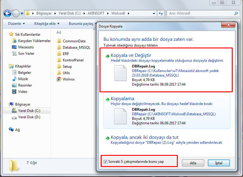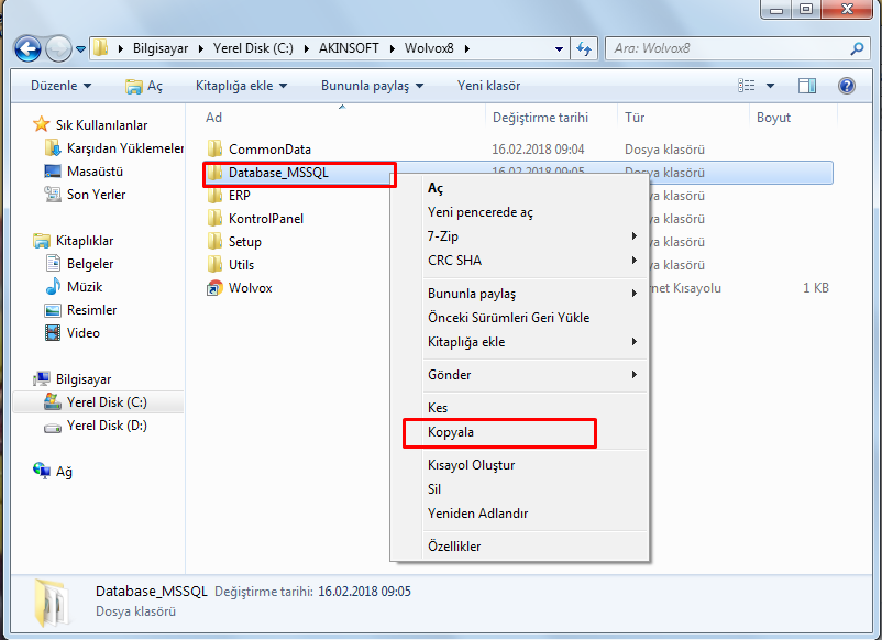 - Program dizinine yapıştırılır: C:\AKINSOFT\WOLVOX…\DATABASE_MSSQL